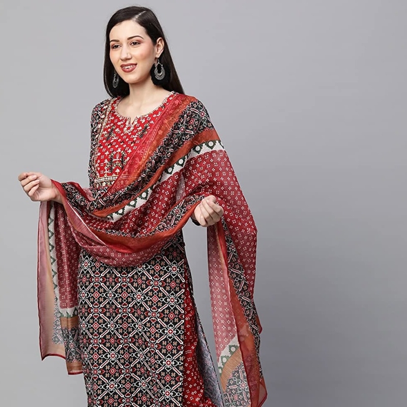 This set includes: Kurta with Bottomwear & Dupatta || Pattern :- Printed || Pant Side Pocket :- One Side Pocket
