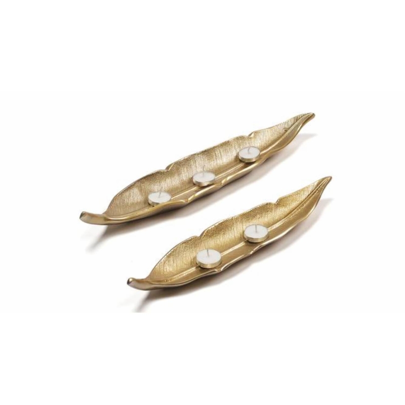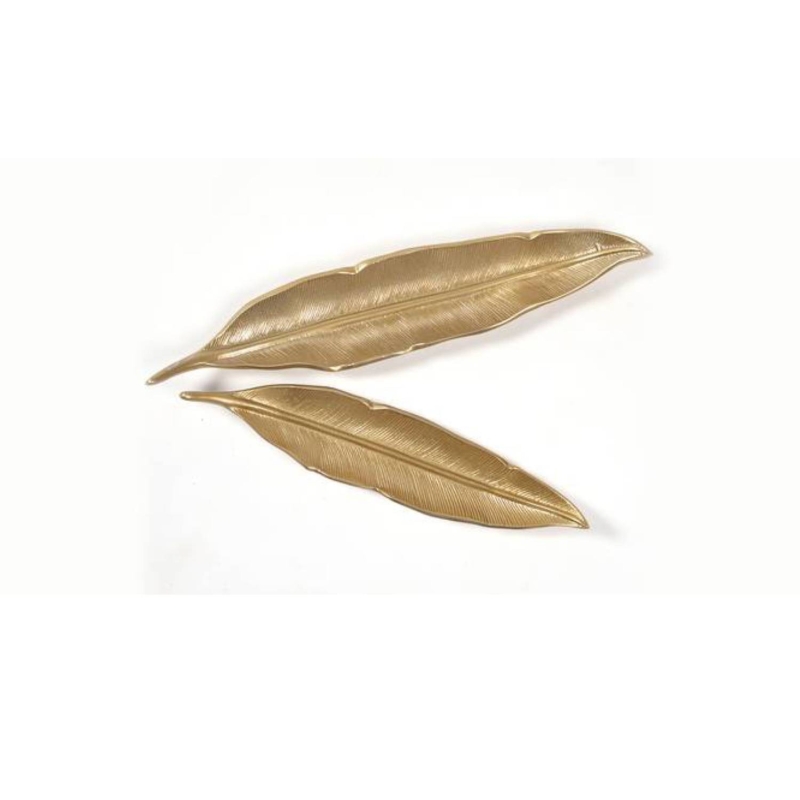 أطباق ديكور من الريش العتيقة - طقم من 2 (ذهبي)