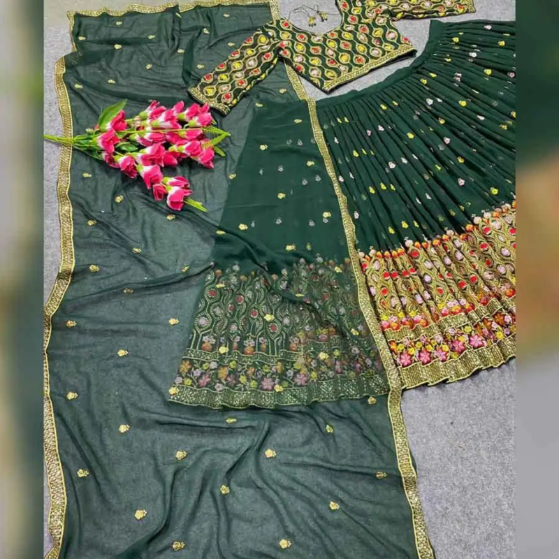 يضيف التصميم ثلاثي الأبعاد طبقة من العمق والتعقيد ، مما يخلق تأثيرا بصريا ملفتا للنظر يكمل بشكل جميل لوحة الألوان النابضة بالحياة. دوباتا ، وشاح تقليدي ، هو إضافة أنيقة لهذه المجموعة ويعزز الراحة والأناقة. يعد Designer Net 3D Work Lehenga Choli مع Dupatta in Green مثاليا لمختلف المناسبات مثل الحفلات وحفلات الزفاف والاحتفالات. يضمن نسيجها خفيف الوزن والمسامي أنه يمكنك الاستمتاع الكامل بالاحتفالات دون الشعور بالإثقال. توفر المادة الشبكية الناعمة تآكلا مريحا ، حتى أثناء الاستخدام المطول. تم تصميم lehenga لإضفاء لمسة جذابة على جميع أنواع الجسم ، مما يوفر صورة ظلية أنيقة وجذابة وأنيقة وعملية.