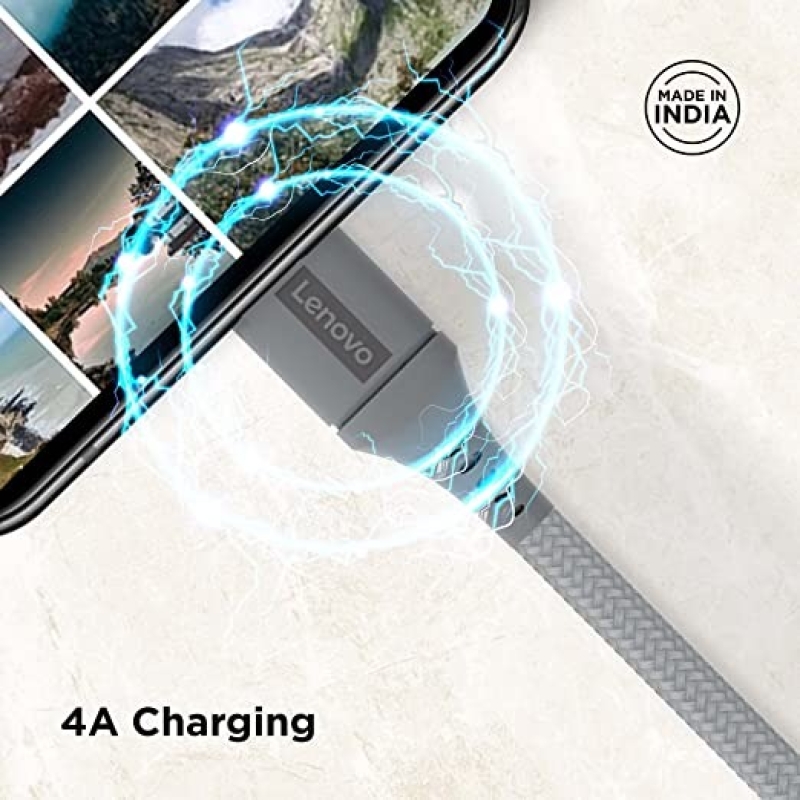 كابل لينوفو مايكرو يو إس بي خالي من تشابك الأراميد بطول ١ متر مع شحن 4 أمبير ونقل بيانات بسرعة 480 ميجابت في الثانية، عمر افتراضي معتمد يزيد عن 10000 انحناء، رمادي معدني