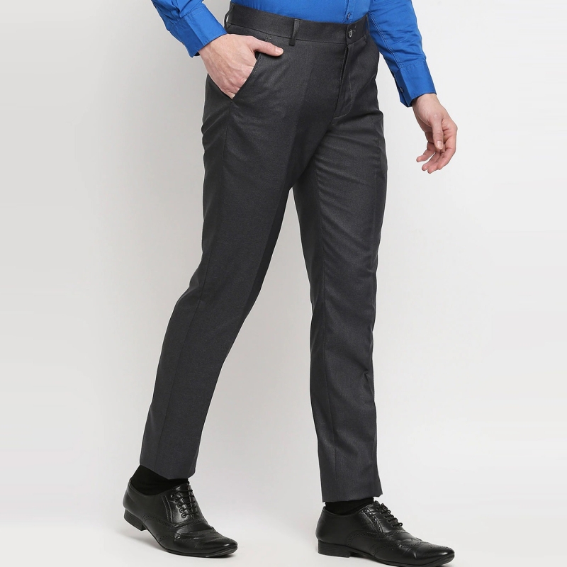 بنطلون رسمي أسود صلب متوسط الارتفاع، بزر للإغلاق، سحاب ذبابة، و5 جيوب قام مصفف الشعر لدينا بإقران هذا البنطلون بحزام هذا الزوج من السراويل لا يأتي مع حزام