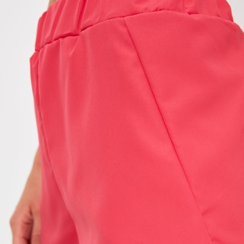 شورت وردي متوسط الارتفاع ، مع حزام خصر مطاطي.