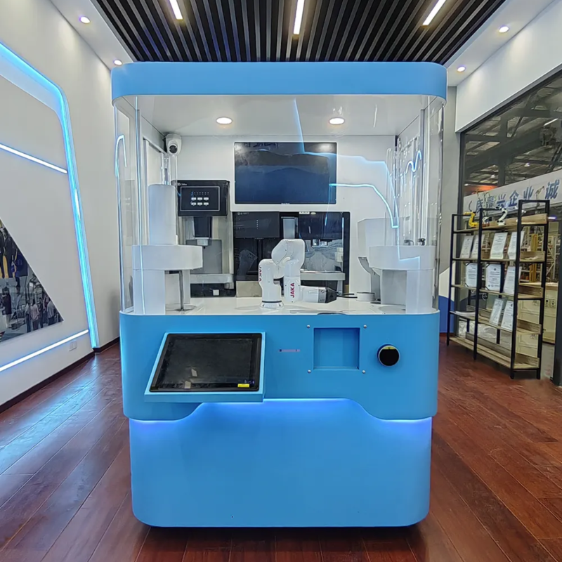 Effortless Coffee-Making Experience: This robotic coffee vending machine, powered by a 6-axis collaborative robot, allows users to enjoy freshly brewed coffee with minimal effort, making it an ideal addition to hotels, restaurants, and cafes.
