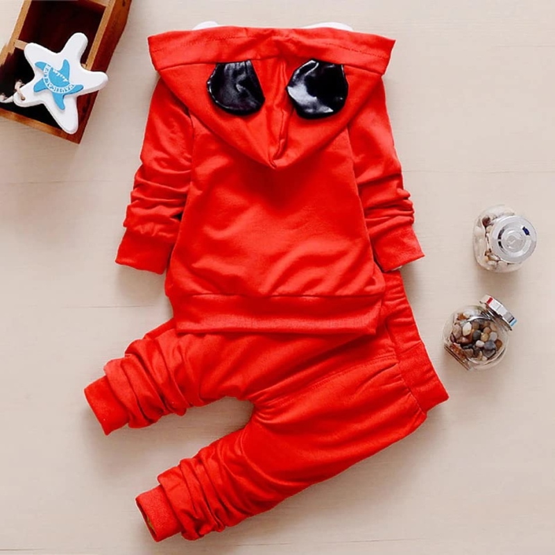 Get baby dressed and ready for outdoor adventures in this bundled set. This 3 piece winter set includes a t-shirt, hood jacket and matching bottoms for baby boy / girl. This clothing set is made of soft cotton. breathable fabric