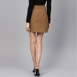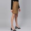 Brown solid straight skirt, has a partially elasticated waistabnd, button closures, stylised asymmetric hem