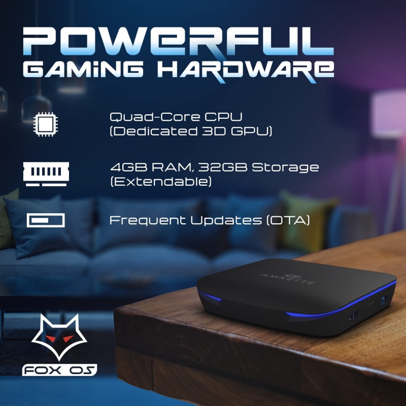 • 4GB RAM, 32GB Storage, and Quad-Core Processor (with Dedicated 3D Graphics) make it an ideal gaming device. With our Native Fox OS, we try to deliver you the best gaming experience with OTA updates. For any HELP or Suggestions, please use the Help Button on the home screen.