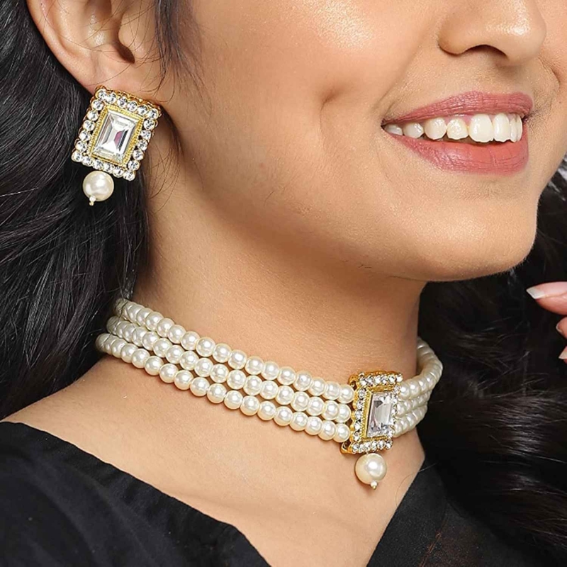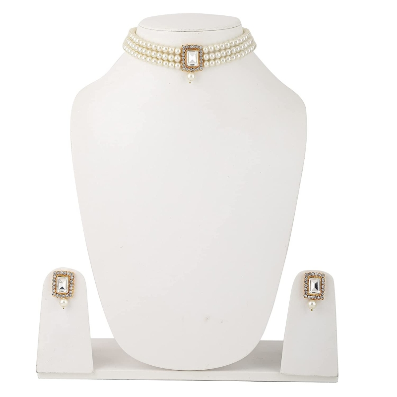 Stylish pearl choker necklace set for women. You will always be the center of attraction by wearing this jewelry set. Wear it with any traditional or modern outfit for bringing elegance to you.