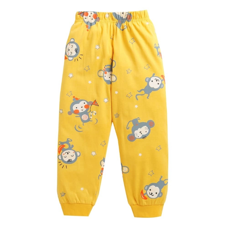 Hopscotch Boys Cotton All-Over Print Top and Pajama Set in Yellow Color