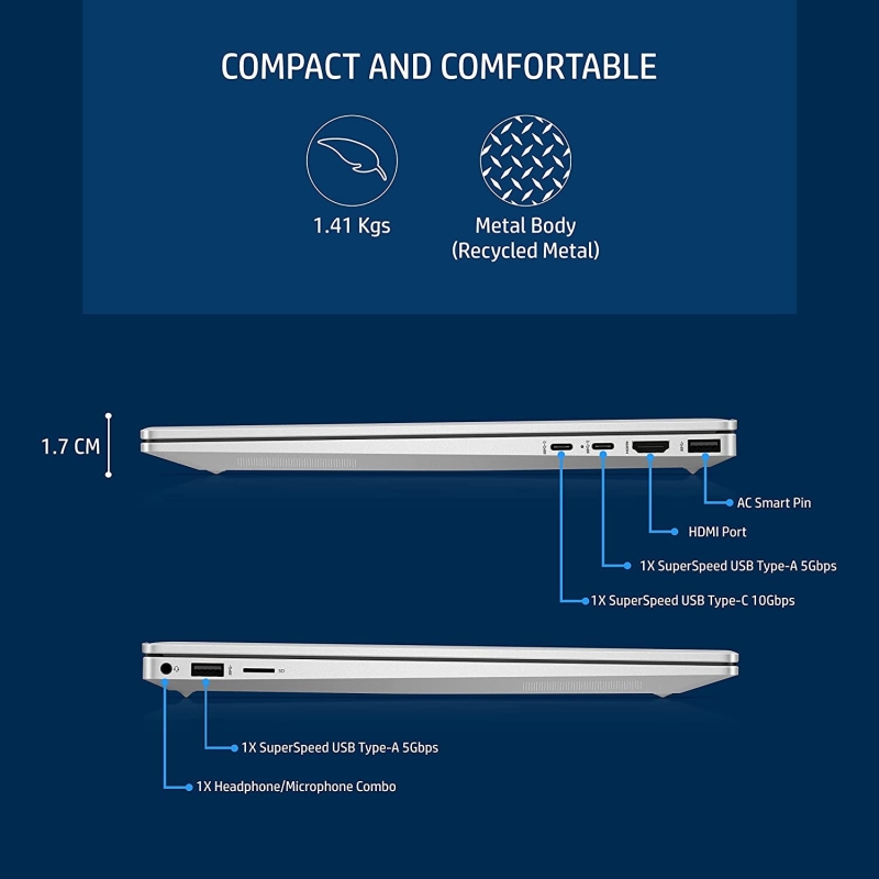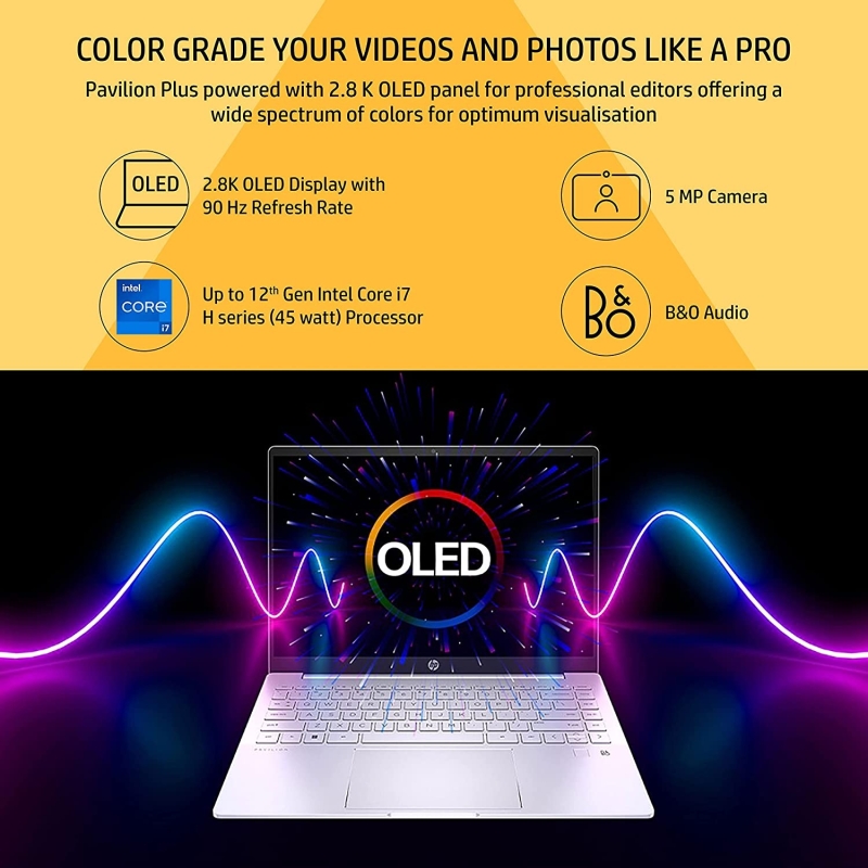Display & Graphics: 35.6 cm (14") diagonal, 2.8K, OLED, 90 Hz, UWVA, micro-edge, BrightView, Low Blue Light, 400 nits, HDR Brightness: 500 nits 243 ppi, 2880 x 1800, TUV Certified eye safe display |Graphics: Intel Iris Xe Graphics