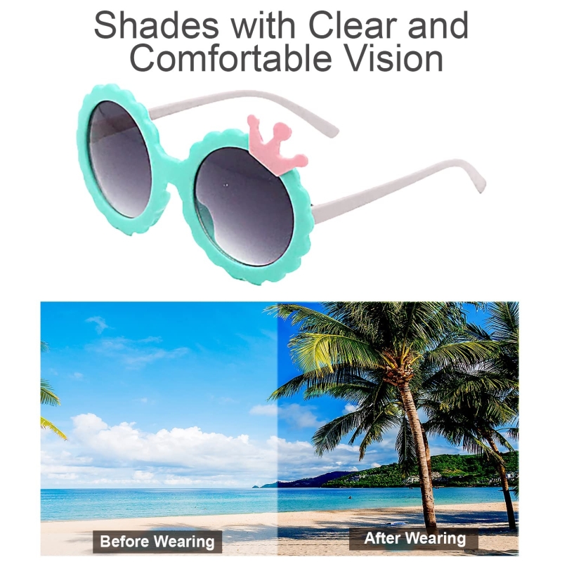Every color suits kids daily or party wear well and these colors are all trendy colors in all the seasons. Glasses feature UV400 protection lenses that efficiently filter out the sun radiation.