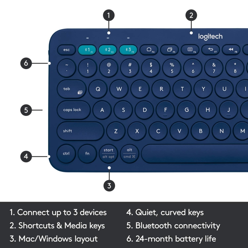 Multi-Device Connectivity: Pair up to 3 wireless devices at once with the simple touch of an Easy-Switch button; easy-Switch lets you connect any Bluetooth device that supports an external keyboard.