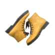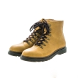 A pair of Brown heeled boots has regular ankle and lace-ups
