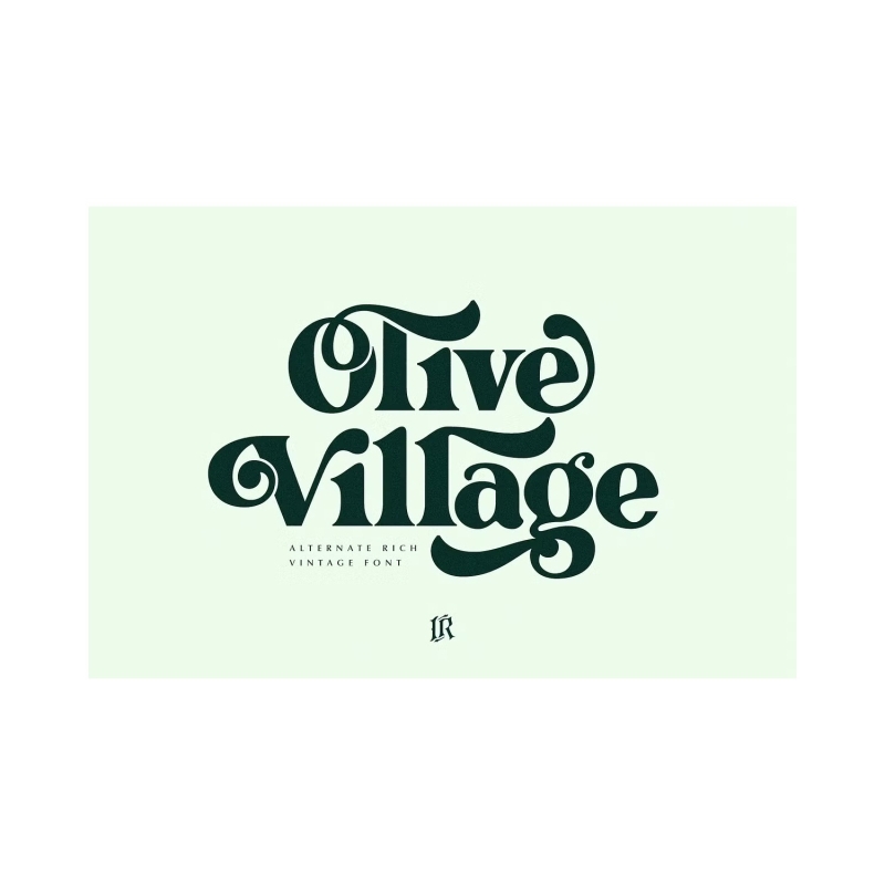 Olive Village is a display font made mainly for headlines, titles, and other short texts and is well-suited for advertising, vintage mood board, branding, logotypes, packaging, titles, editorial design and modern and vintage design.