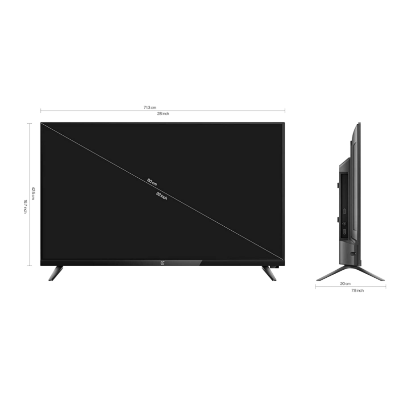 Connectivity: 2 HDMI ports to connect a set-top box, Blu-Ray players, gaming console | 2 USB ports to connect hard drives and other USB devices, Dimensions(TV With Stand) - 71.3cm*20cm*46.9cm, VESA Hole Pitch - 20cm*20cm