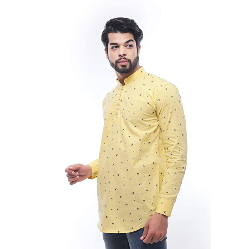Prinit Attires Men's Cotton Printed Short Kurta