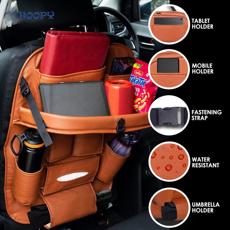Keep your car clean - you could wipe clean with a soft cloth, The back seat organizer is made of luxury pu leather to ensure durability and eliminate stretching or shrinkage.