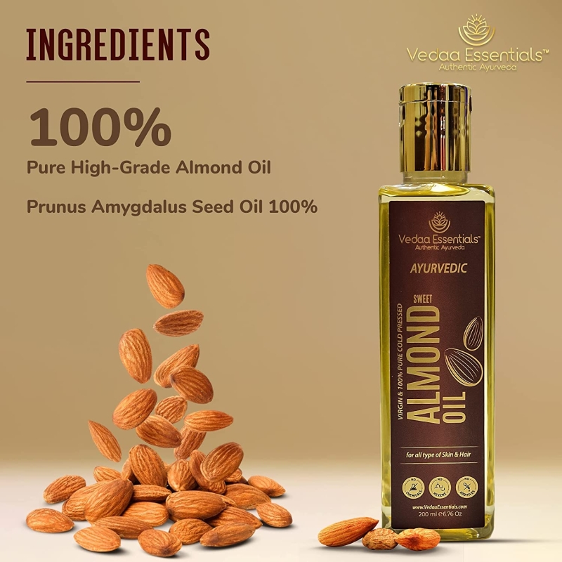 Goodness in a Pack: Vedaa Essentials Sweet Almond Oil is a natural head-to-toe solution for skin and hair. Stop using chemicals on your skin.