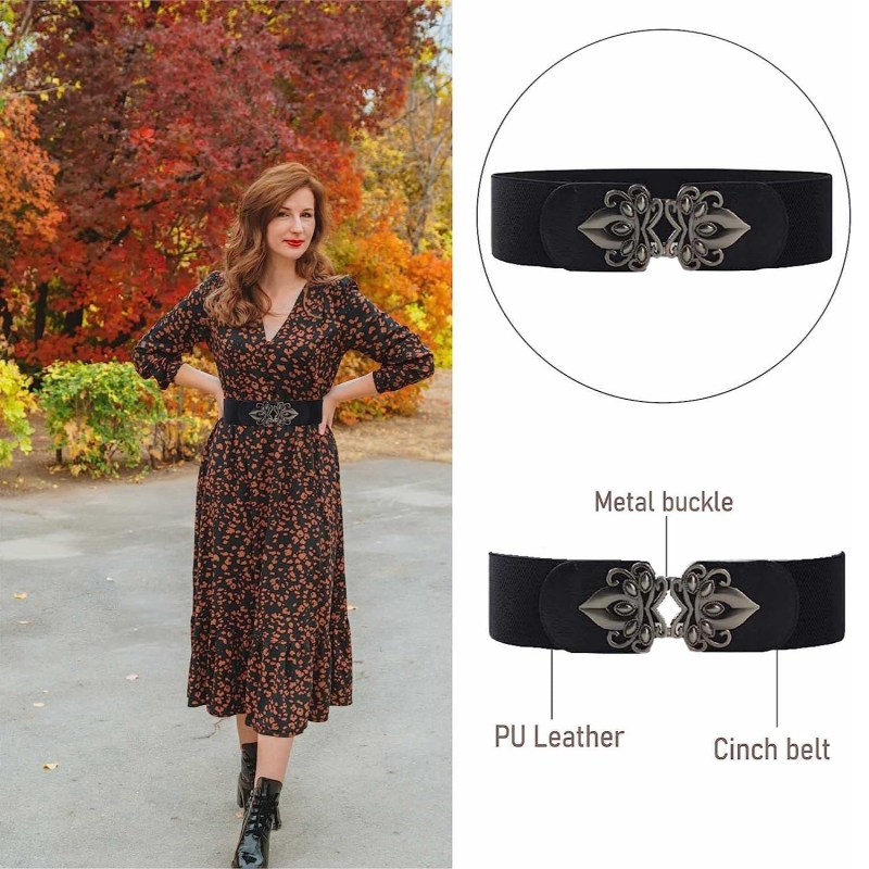 Syga Women Cinch Belt, PU Leather Stretchy Waist Belt