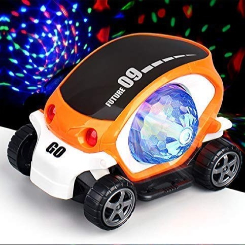 ROTATES 360 DEGREE Car Bump and Go Toy with 3D Lights, Dancing Toy, Battery Operated Toy - ( battery not included )Assorted Color