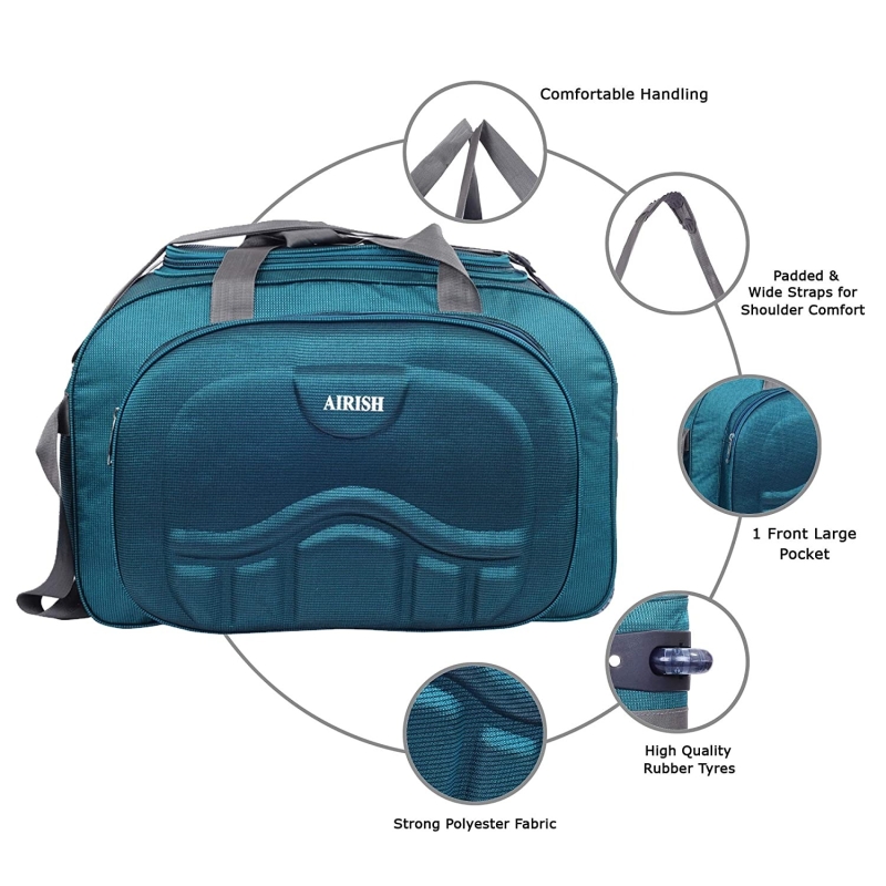 2 Wheels for easy carrying, 3 compartments (1 Main and 2 medium outer) , Width 21 inch, Height : 14.5 inch, Depth : 12 inch