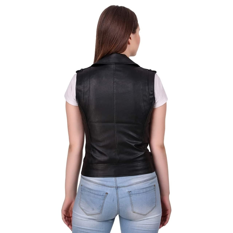 سترة جلدية للنساء والفتيات دراجة نارية راكب الدراجة النارية معطف قصير سترة سوداء