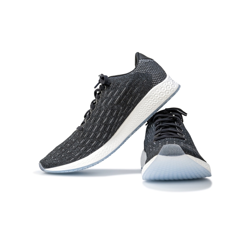 زوج من الأحذية الرياضية الرمادية المستديرة ، لديه تصميم منتظم ، تفاصيل الأربطة الجزء العلوي من النسيج وسادة قدم مبطنة نعل سفلي محكم ومنقوش