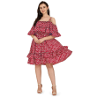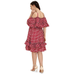 فستان بطيات مرح مع كشكش على الحافة. فتحة رقبة مكشوفة على الكتف، مع حمالات نودلز وكاب كشكش