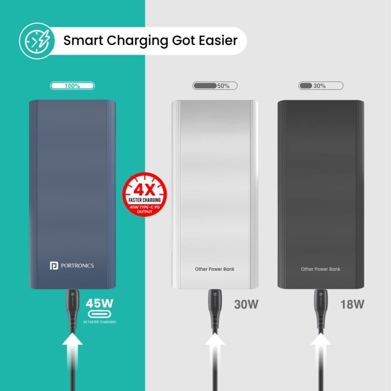 بورترونيكس باور 45 20000 مللي أمبير بنك الطاقة لأجهزة الكمبيوتر المحمول / المحمول مع شحن سريع 45W