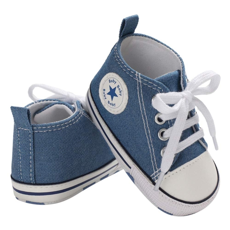 Baby Boys Fabric Canvas Style Lace Up Shoes in Blue Color