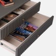 Base masterfully crafted of premium engineered wood in beige-grey lacquered polish.