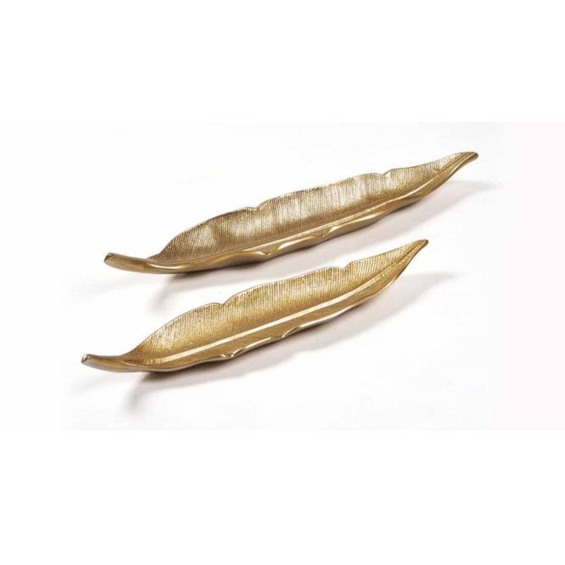 Antique Feather Decor Dishes -Set of 2 (Gold)