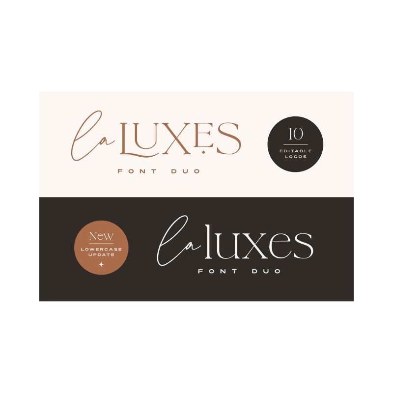 Indulge yourself in a luxurious typography pairing with La Luxes; a classic font duo consisting of an elegant Script & ligature-rich Serif. Also included in this product are 10 bonus logo templates, allowing you to easily edit the designs you see in the images above and create stunning logos in minutes. (Logo templates require Adobe Photoshop or Adobe Illustrator to open).