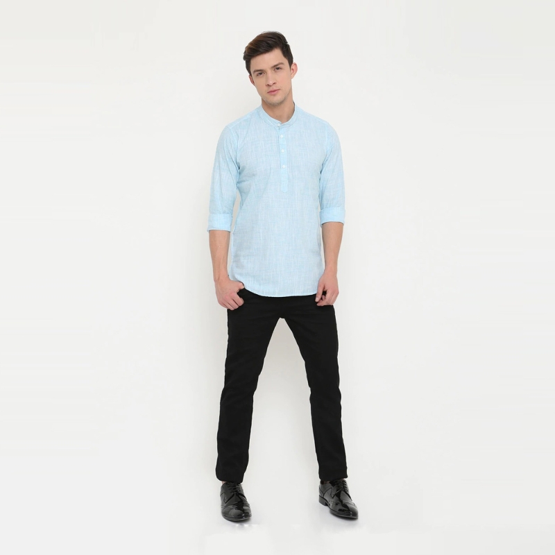 Men Blue Woven Design Pure Cotton Kurta