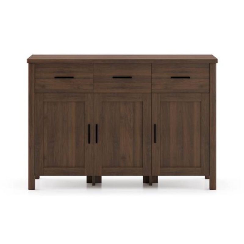 A little bit modern. A little bit classic. The Norland family blends warm wood tones with transitional lines and a sleek, lightweight structure to suit most décor styles. The sideboard’s drawers make room for cutlery and napkins, while the cupboards below are perfect to keep your delicate crockery safe. The broad top doubles as a serving station, letting you offer extra helpings of everything without another trip to the kitchen.