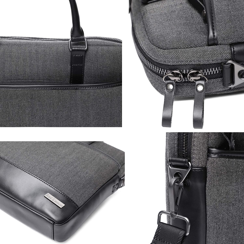 • MATERIAL: Highend microfiber leather sewed with durable herringbone woolen fabric makes this bag long-lasting use. Seamless stitching, soft to touch, and long-lasting durability provide an elegant outlook as well as protect your laptop from waterproofing, shock, and other damages