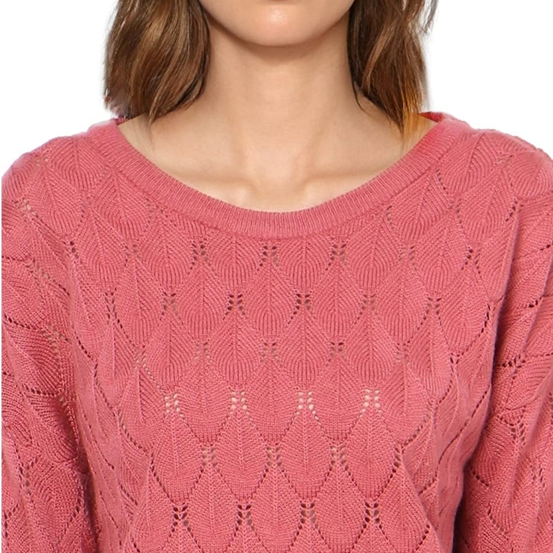 Pink self design pullover ,has a round neck, na pockets, long sleeves, ribbed hem